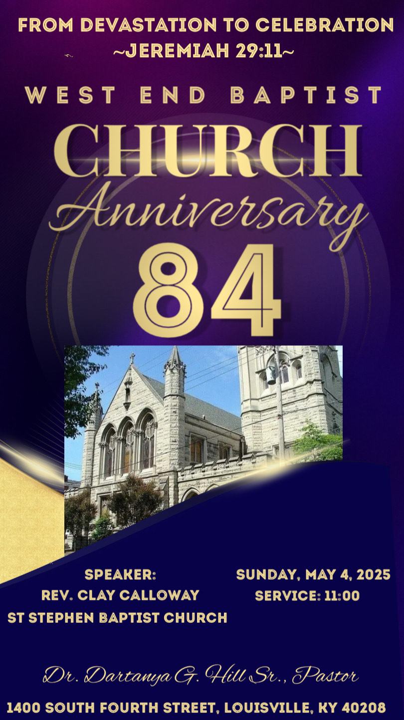| West End Baptist Church continues in The Faith to build on the foundation of Jesus Christ that The Lost will be Saved, The Saved will be Taught, and the Taught will be Trained to share the truth of the Gospel to all people. |